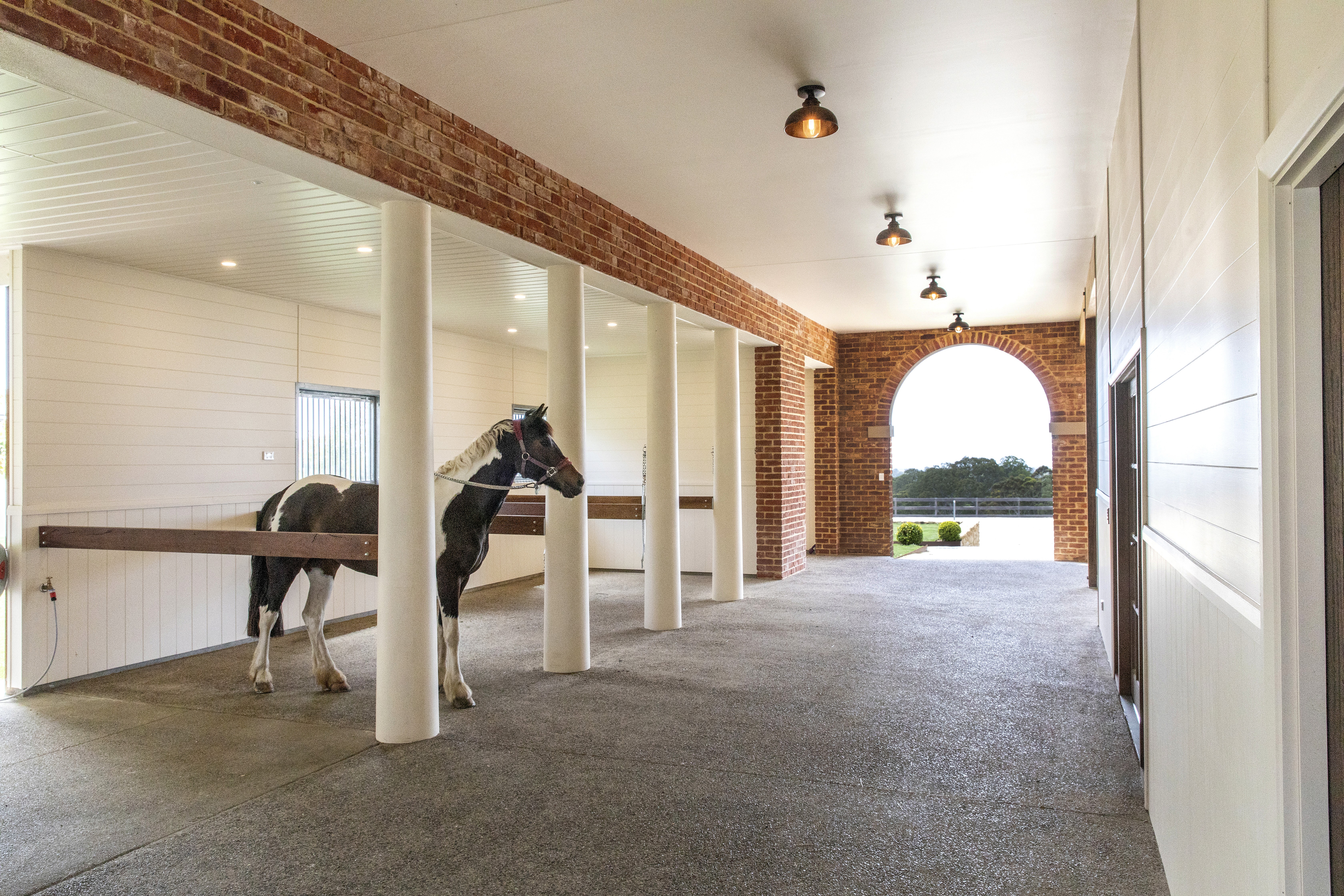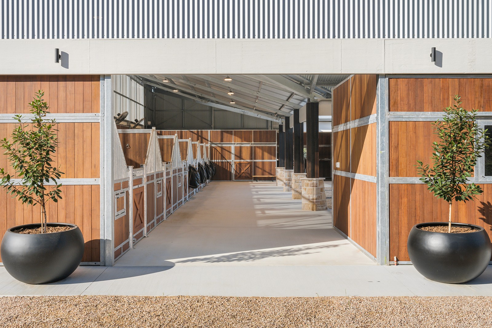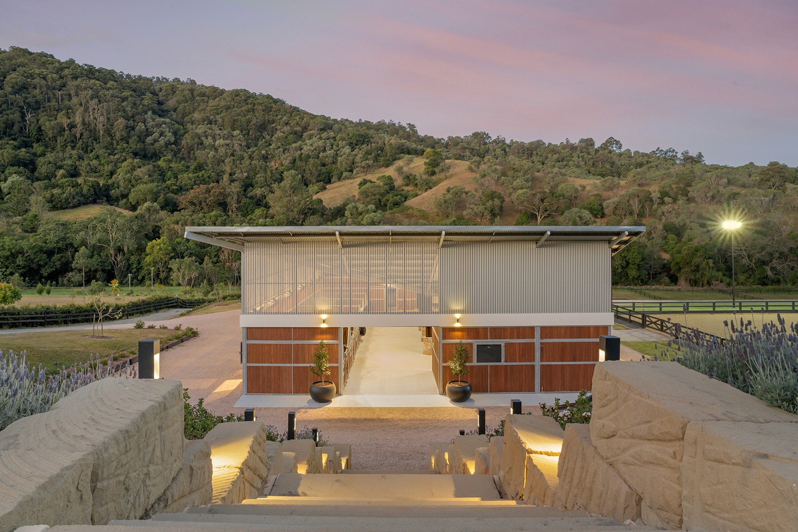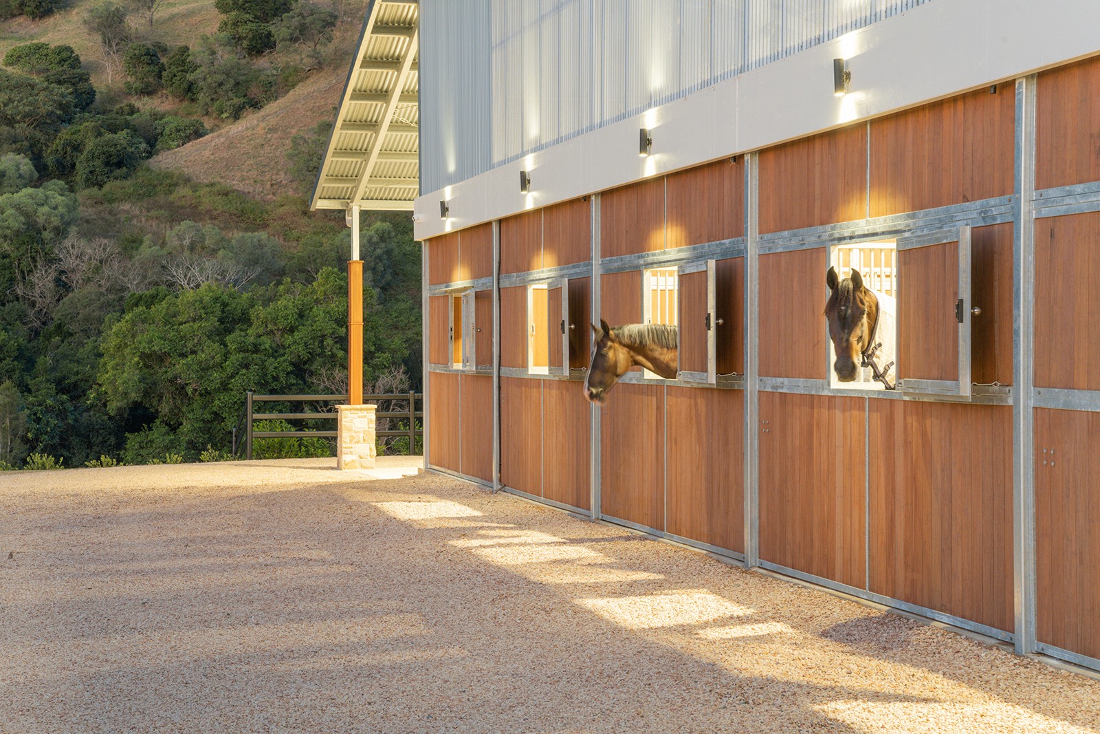 Located in the rolling Adelaide Hills of South Australia, this is a true family entertainment building. Four open stables fronting a verandah with associated equine facilities are complemented by an outdoor kitchen, along with an upper level entertainment room with four guest bedrooms. Recycled red bricks are the main construction material, with the building taking cues from local construction traditions.